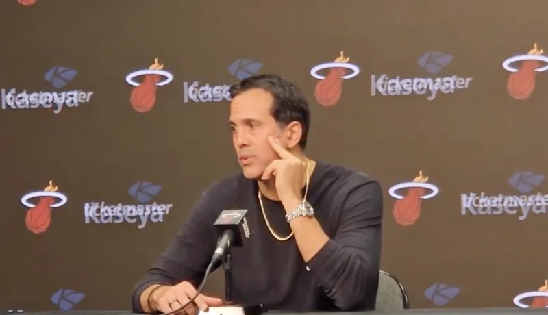 热火主帅埃里克-斯波尔斯特拉接受了记者采访,谈到了德文-布克。